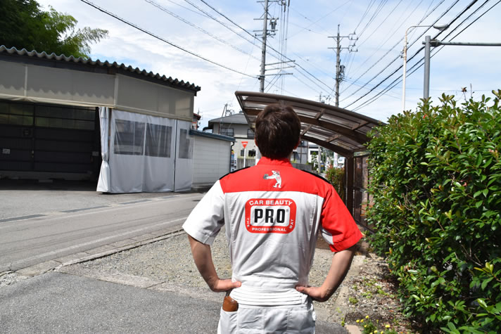 それでは早速、丸大興業さんにお邪魔して大村会長はどこにいるのか探していると 車に人影が??