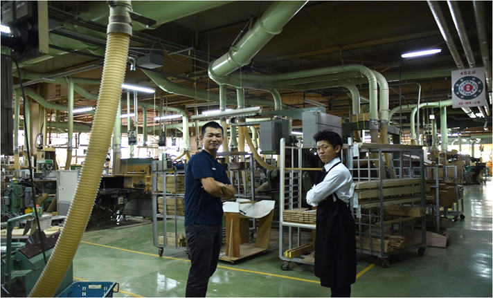 今回は創業70周年の日進木工、北村君に案内をしていただきました。
