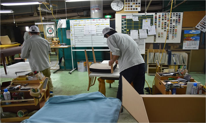 たくさんの職人さんのチェックによって高品質な椅子を作っています。