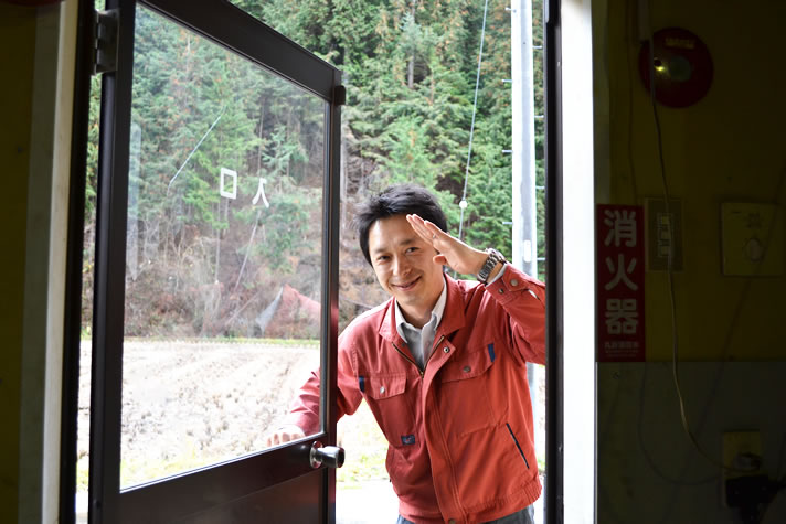 握手をした時、力強い握力を感じました。さすが、日々の作業で鍛えられた身体です!!